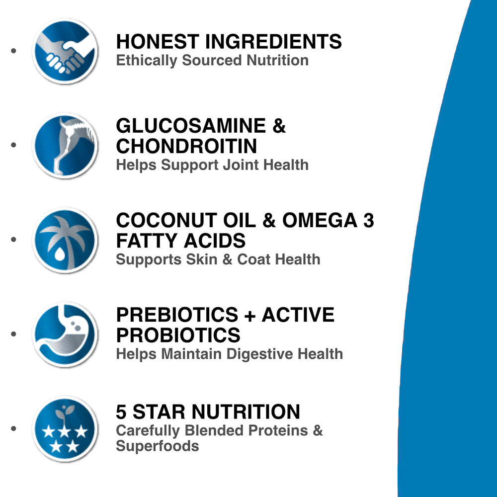 Protein (min) 32.0%, Fat (min) 15.0%, Fiber (max) 4.0%, Moisture (max) 10.0%, Ash (max) 10.0%, EPA (min) 0.05%, DHA (min) 0.07%, Calcium (min) 1.2%, Phosphorus (min) 1.0%, Magnesium (max) 0.12%, Sodium (min) 0.30%, Vitamin E (min) 80 IU/kg, Omega-6 Fatty Acids (min) 3.0%, Omega-3 Fatty Acids (min) 1.0%, Taurine (min) 1,000 mg/kg, Glucosamine (min) 600 mg/kg, Chondroitin (min) 500 mg/kg, Total Bacillus Coagulans Fermentation Product (min) - 100 million cfu/lb. Calorie Content (calculated) - 3700 kcal/kg (445 kcal/cup). 1 cup = approximately 4oz (124g) of food.