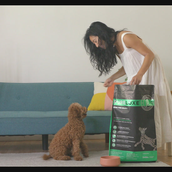 Give your energetic canine the best with Pureluxe Elite Nutrition Healthy Activity Grain-Free Turkey & Split Peas Dry Dog Food. This formula is perfect for puppies, highly active dogs, and show dogs who need high protein, low-glycemic carbs, carefully blended fats, superfoods, and micro-nutrition to meet their high nutritional needs. The number one ingredient is fresh, protein-rich turkey, which contains natural glucosamine and chondroitin to support bone and muscle growth. Plus, with omega-3 fatty acids, specifically DHA and EPA, your pup’s brain development will get a boost. And with Pureluxe’s Transparency platform, you can see key nutritional information for every batch of food by simply inputting the date code on the bag into the form on their website.